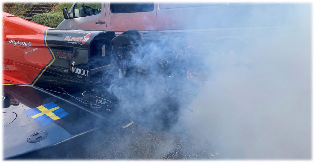 Med alla problem (jag skall inte trötta ut er med att räkna upp dom) som vi har haft vid varje tävling under året så har vi inte hunnit utveckla ekipaget utan vårt fokus har bara varit att få båten i sjön med så hela delar som möjligt. Det har varit så illa så att Johan vid ett tillfälle, i Norge, har varit tvungen att bryta och vid ett annat tillfälle, i Italien, varit tvungen att köra hela Grand Prix-loppet med trasig hydraulik som reglerar motorns vinkling (gick sönder på första varvet).