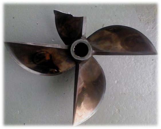 Efter att Patrik har svetsat och slipat till svetsarna så syns det praktiskt taget inte att riggen har varit skadad. När jag har målat skadorna så kommer ingen att se att riggen har varit utsatt för ett trasigt propellerblad.
