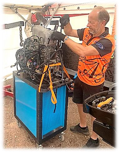 Vi hade upptäckt ett litet oljeläckage i motorblocket. Vi bestämde oss för att försöka fixa det på lördagskvällen. Det är ett stort jobb då man måste plocka ned mycket på motorn