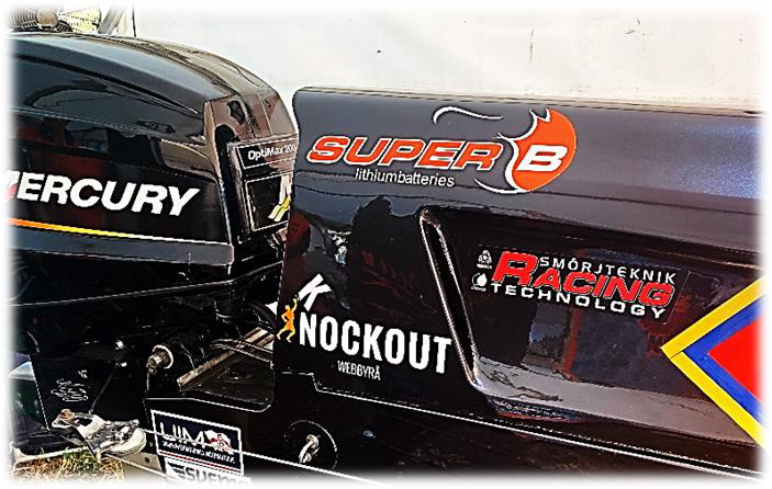Båten såg lite annorlunda ut den här tävlingen än tidigare. Jag skrev i tidigare information att vi har två nya samarbetspartners, på bilderna nedan kan ni se hur deras logos ser ut.