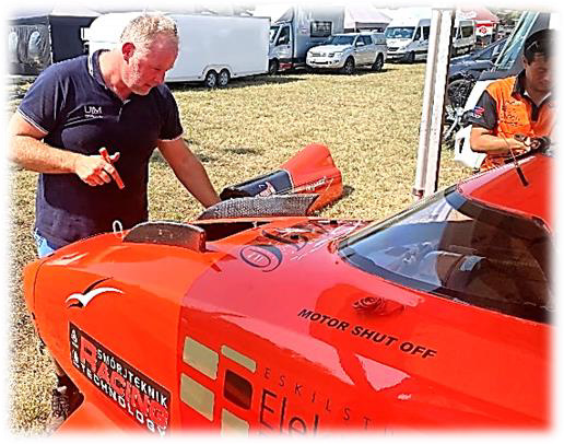 Det kommer att bli många mil upp och ned genom Europa. Vi är hemma ungefär en vecka mellan varje tävling. På den veckan skall vi hinna reparera det som eventuellt har gått sönder eller slitits ut. Vi skall också hinna med att ändra det som vi lär oss om båt eller propellrar. Det är en ständig jakt på högre fart, bättre acceleration och bättre körbarhet. Det senaste vi har gjort är att ändra en del i botten på båten för att få aktern att lyftas snabbare och mer ur vattnet.