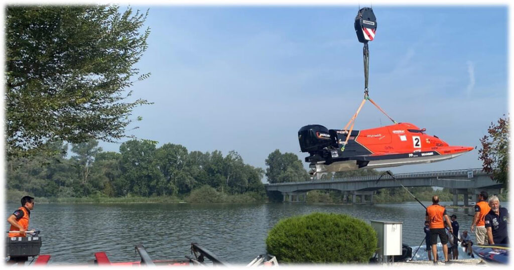 Helt plötsligt känner Johan att det rinner in vatten i stolen och han meddelar i radion ”rädda båten jag sjunker”. Mekanikerna reagerar blixtsnabbt och kastar på en propeller och bara drar fast den för hand, under tiden rusar en av de andra mekanikerna och hämtar lyftstropparna. En mekaniker hoppar ombord på båten med lyftstropparna och Johan startar motorn och åker ett varv i depån medan mekanikern sätter fast stropparna. Kranföraren kör ut lyftkroken över vattnet. Johan kör in under kroken och mekanikern fäster stropparna i kroken. Sedan lyfter krankillen så att stropparna spänns och båten blir hängande i kranen tills vattnet har runnit ut så att det går att lyfta upp den på land.
