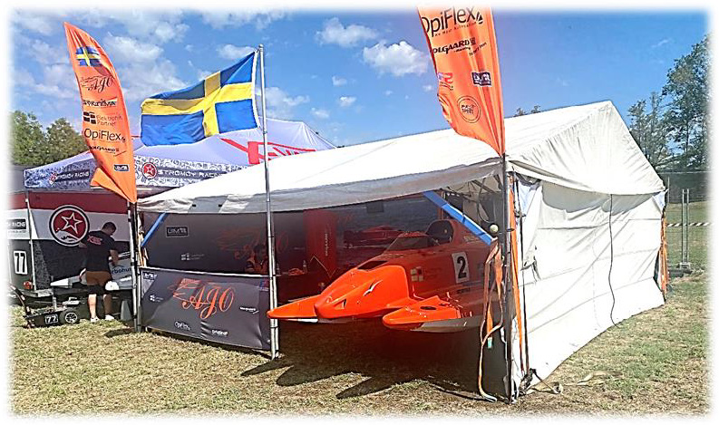 På plats i depån gjorde vi som alltid, vi byggde upp vår depåplats, innan vi åkte till hotellet. Dagen efter anslöt resten av teamet och vi fick båten besiktad utan några problem.