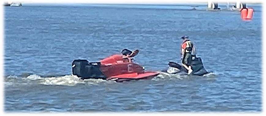 Vi klarade oss från att köra på någonting som låg och flöt i vattnet men en del andra hade inte samma tur. Det var ett antal växelhus och propellrar som blev mer eller mindre skadade. Alla övriga planerade aktiviteter sköts upp till söndagen.
