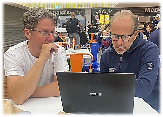 Medan vi väntade på flygplatsen passade Johan och Svenne på att gå igenom de data som hade samlats in under träningen dagen före.